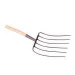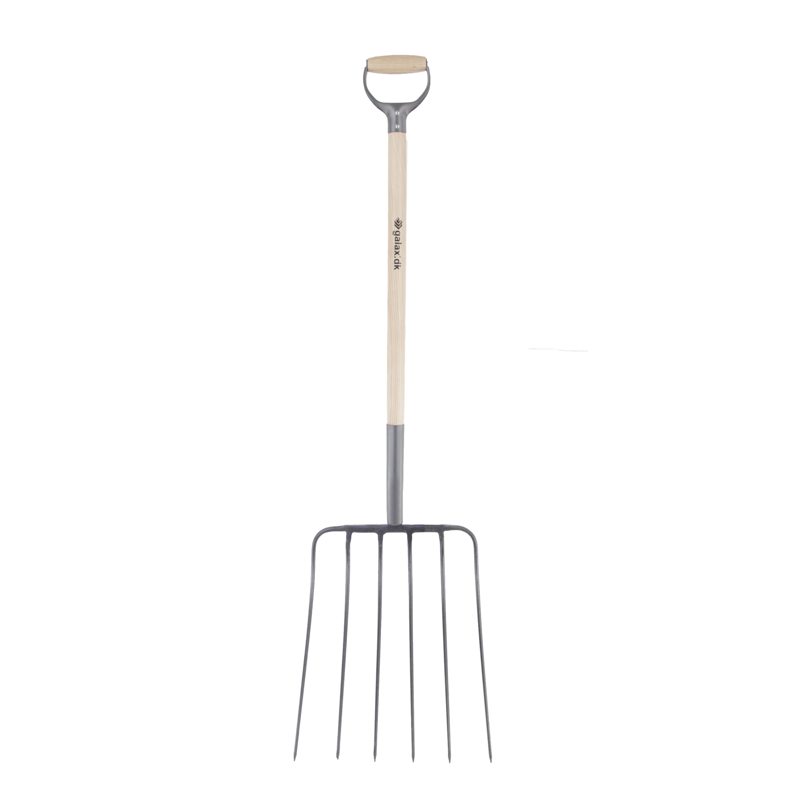 Lakeret asketræsskaft med kraftigt jern D-greb. Grebhoved 450x350 mm, totallængde 1330 mm, vægt 2400 g.