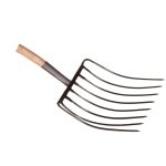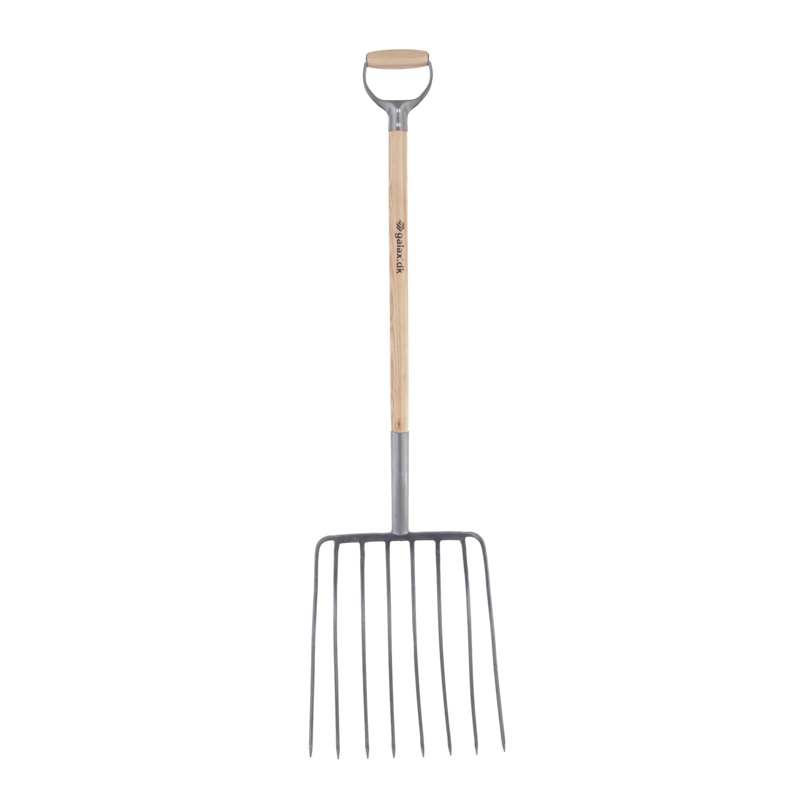 Lakeret asketræsskaft med kraftigt jern D-greb. Grebhoved 450x360 mm, totallængde 1330 mm, vægt 2500 g.