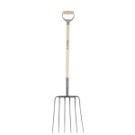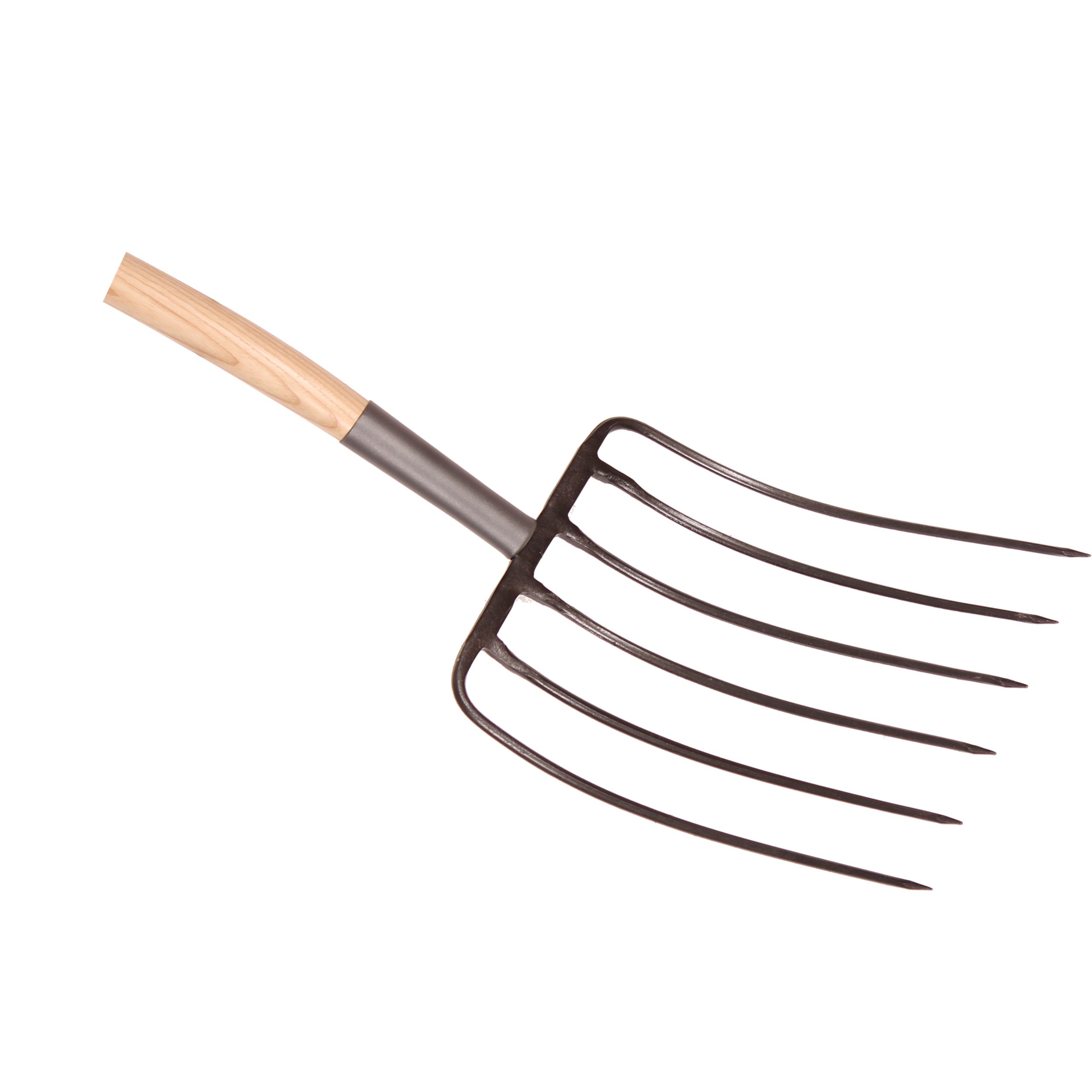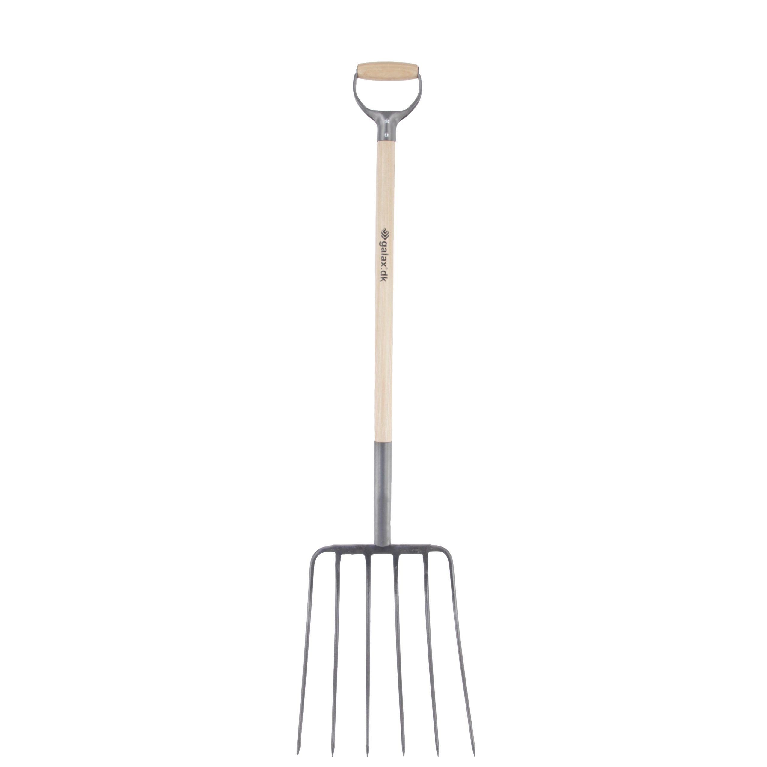Lakeret asketræsskaft med kraftigt jern D-greb. Grebhoved 380x310 mm, totallængde 1260 mm, vægt 2350 g.