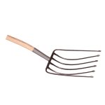 Lakeret asketræsskaft med kraftigt jern D-greb. Grebhoved 380x350 mm, totallængde 1260 mm, vægt 2400 g.