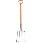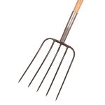 Lakeret asketræsskaft med kraftigt jern D-greb. Grebhoved 350x250 mm, totallængde 1230 mm, vægt 2100 g.